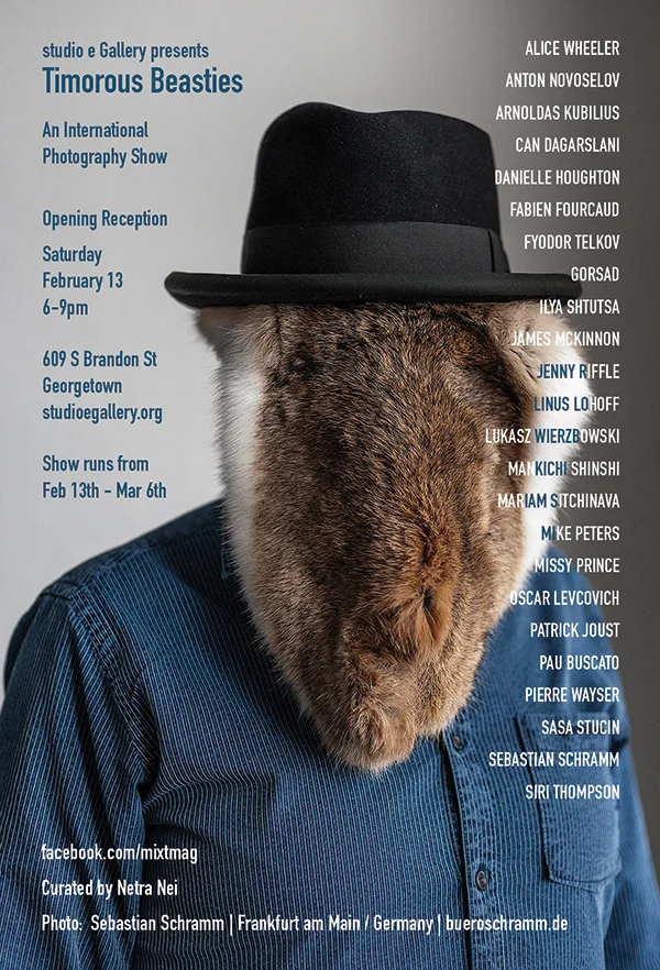 "MIXT Magazine is plugged into the New Photography movement happening in Europe, modeled their first show here on European exhibits that use social media to bring together a wide-ranging group of international photographers and to attract a broader, mostly younger, audience. They will be curating another show here in February. The premise of this show is the same: international, up-and-coming photographers sourced through social media. The general theme will be centered around fur, feathers and foliage. It promises to be lush." - Dawna Holloway (studio e, Owner) - review in Vanguard Seattle.